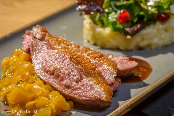 In de ochtend staat er een uitgebreid ontbijtbuffet klaar in het moderne restaurant van Landhotel Jagdschlösschen. In het restaurant ligt de nadruk op een moderne Duitse keuken met een creatieve twist en aandacht voor kwaliteit. Op de kaart staan herkenbare gerechten met een verfijnde uitvoering, zoals carpaccio, visgerechten en steaks, aangevuld met seizoensgerechten en vegetarische en vegan opties. Daarnaast is er een wisselend menu, waaronder een wintermenu in drie gangen, en als dessert staan er klassiekers zoals crème brûlée en Kaiserschmarrn, aangevuld met een kaasselectie uit de regio.
